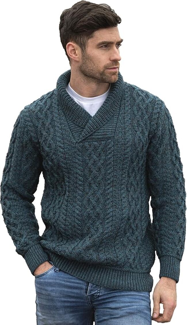 #10. Мужской свитер ирландской вязки с шалевым воротником Aran Crafts
