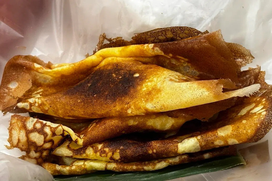 Свежий аппом из Ravi's Claypot Appom Manis, приготовленный на заказ, мягкий и пушистый в центре, а края золотистые и хрустящие.