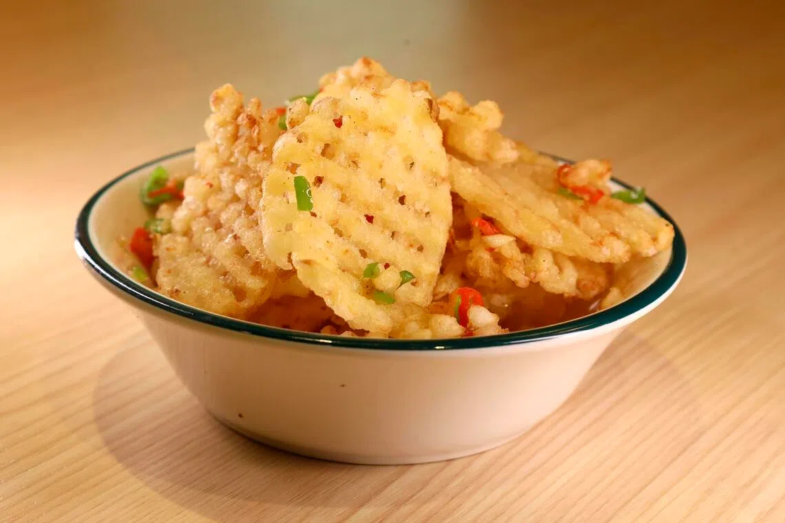 Картофельные ломтики с перцем и солью в ресторане Zheng Shi Shang Hunan Cuisine.