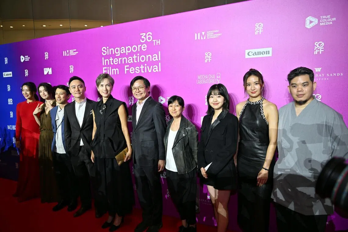 (Слева направо) посол фестиваля SGIFF Ребекка Лим; Девушка-режиссер Шу Ци; генеральный директор SGIFF Джереми Чуа; председатель SGIFF Бу Цзюньфэн; г-жа Жозефина Тео, министр цифрового развития и информации; исполнительный директор IMDA Нг Шер Понг; член правления SGIFF Ивонн Тэм; Девчачьи актрисы Бай Сяоин и 9m88; и программный директор SGIFF Тонг Кей Ви на красной дорожке 36-го Сингапурского международного кинофестиваля 26 ноября.