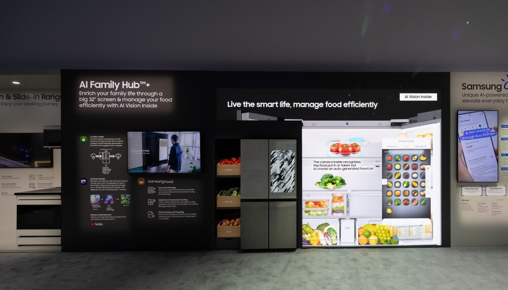 В 2024 году Samsung сосредоточила свои заявления на интеграции искусственного интеллекта в повседневные продукты. Сделанный на заказ 4-дверный холодильник Flex с AI Vision Inside включает функцию распознавания продуктов питания, которая помогает управлять потреблением продуктов питания и сокращать отходы.