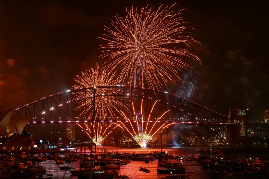 Сотни тысяч зрителей заполнили гавань Сиднея, чтобы посмотреть девять тонн фейерверков в условиях жестких мер безопасности.