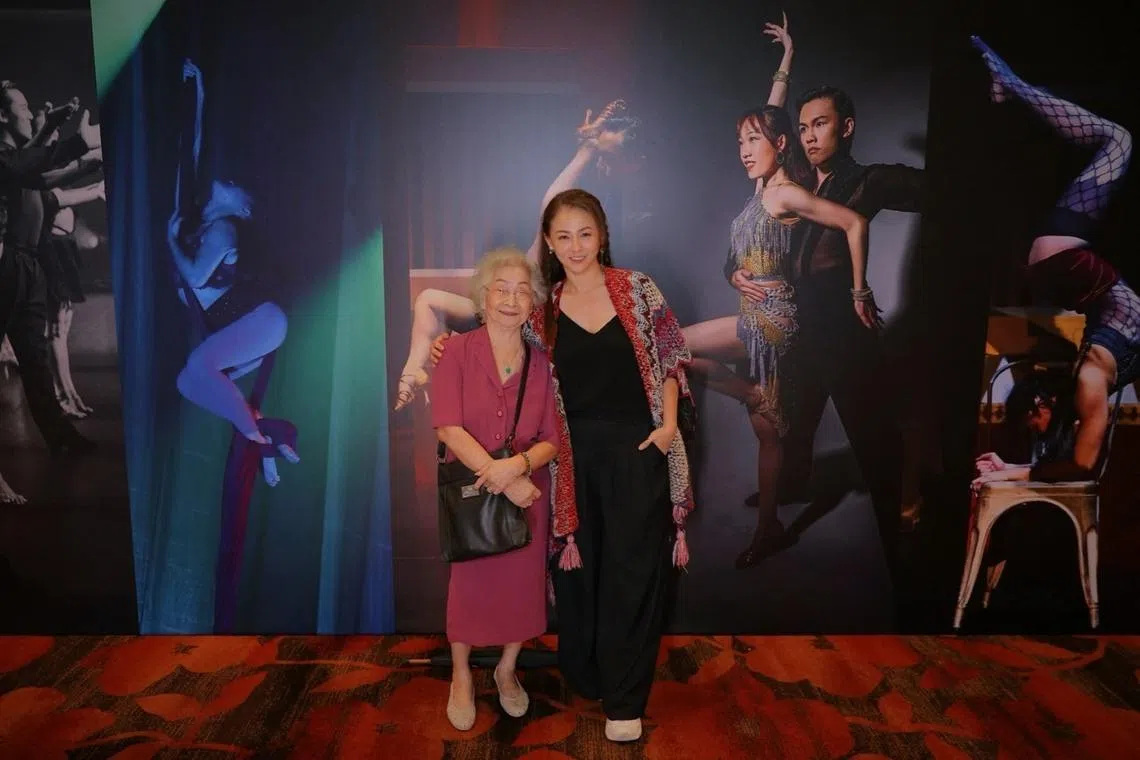 Сингапурская актриса Адель Вонг (справа) со своей бабушкой, мадам Се Лин Фен (слева), в Lai Frisque Yi Xia Leh! цирковое представление в Marina Bay Sands в 2024 году.