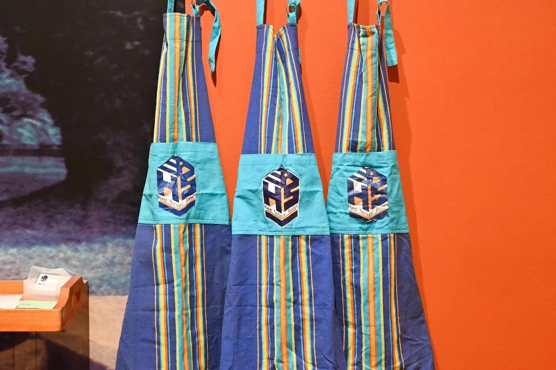 Набор из трех фартуков, использованных в перформансе «Служба на дому» 2003 года Аманды Хенг, Твардзик Чинг Чор Ленг и Винсента Твардзика Чинга.