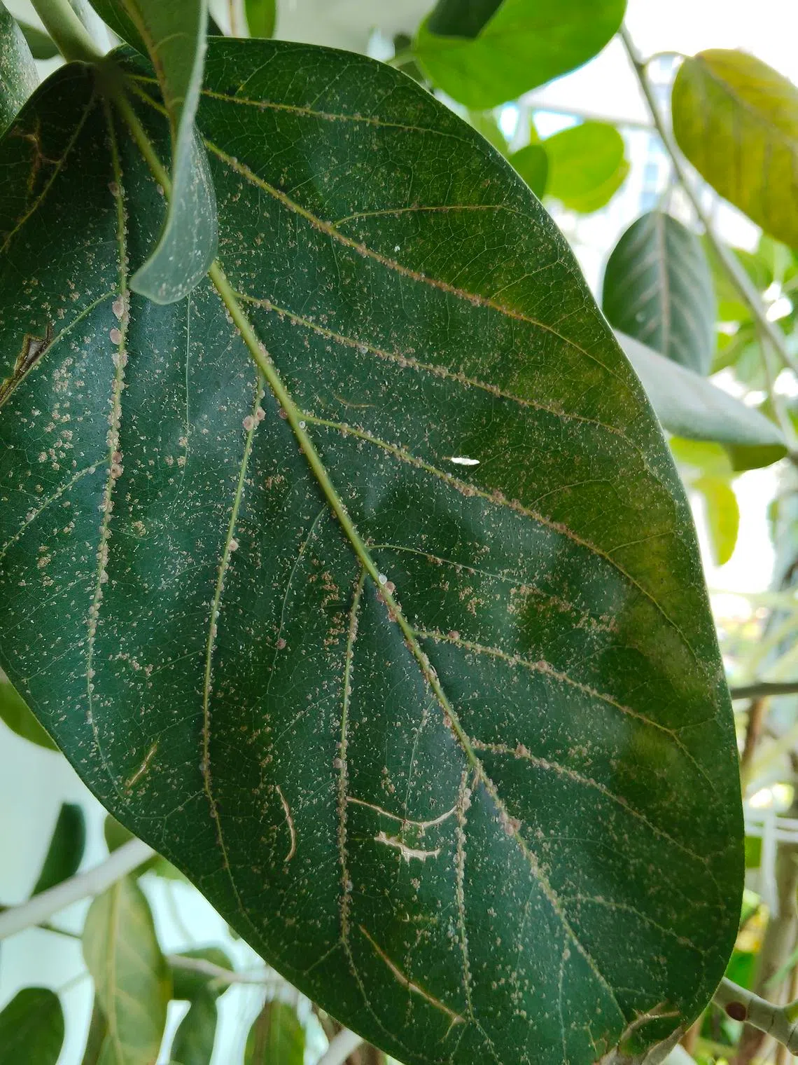 На ветвях растения также появляются коричневые шишки. Если вы сможете их поцарапать, то это могут быть щитовки — разновидность вредителей, высасывающих сок, распространённых на древесных растениях. Вам нужно будет регулярно и тщательно распылять летнее масло, чтобы убить их.
