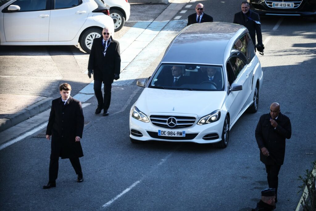 В середине утра гроб переводчицы, покрытый плетением, был перевезен в церковь Успения Богоматери, где отслужили мессу в присутствии ее сына, с которым у нее были сложные отношения, и известных личностей, таких как ультраправый лидер Марин Ле Пен.