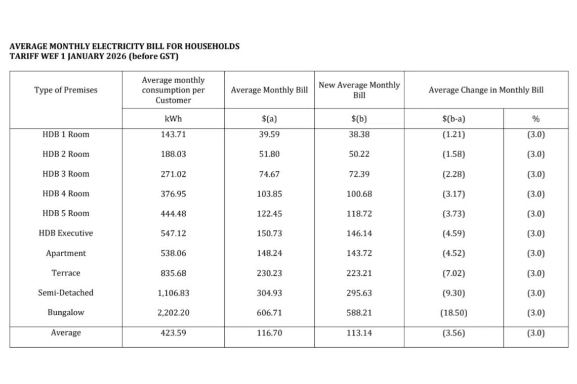 СИНГАПУР – Домохозяйства будут платить меньше за электричество и газ из с января по март за счет снижения затрат на электроэнергию и топливо.